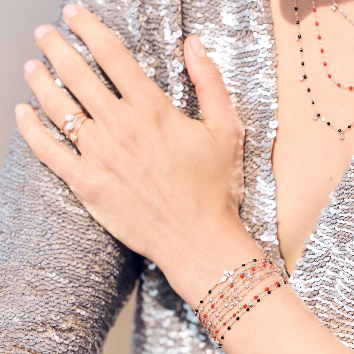 With gold and diamond, the croix lumière delicately adorns our wrist. The gigi Clozeau croix lumière with 18 carat rose gold and 1 diamond on a classic gigi Black chain.