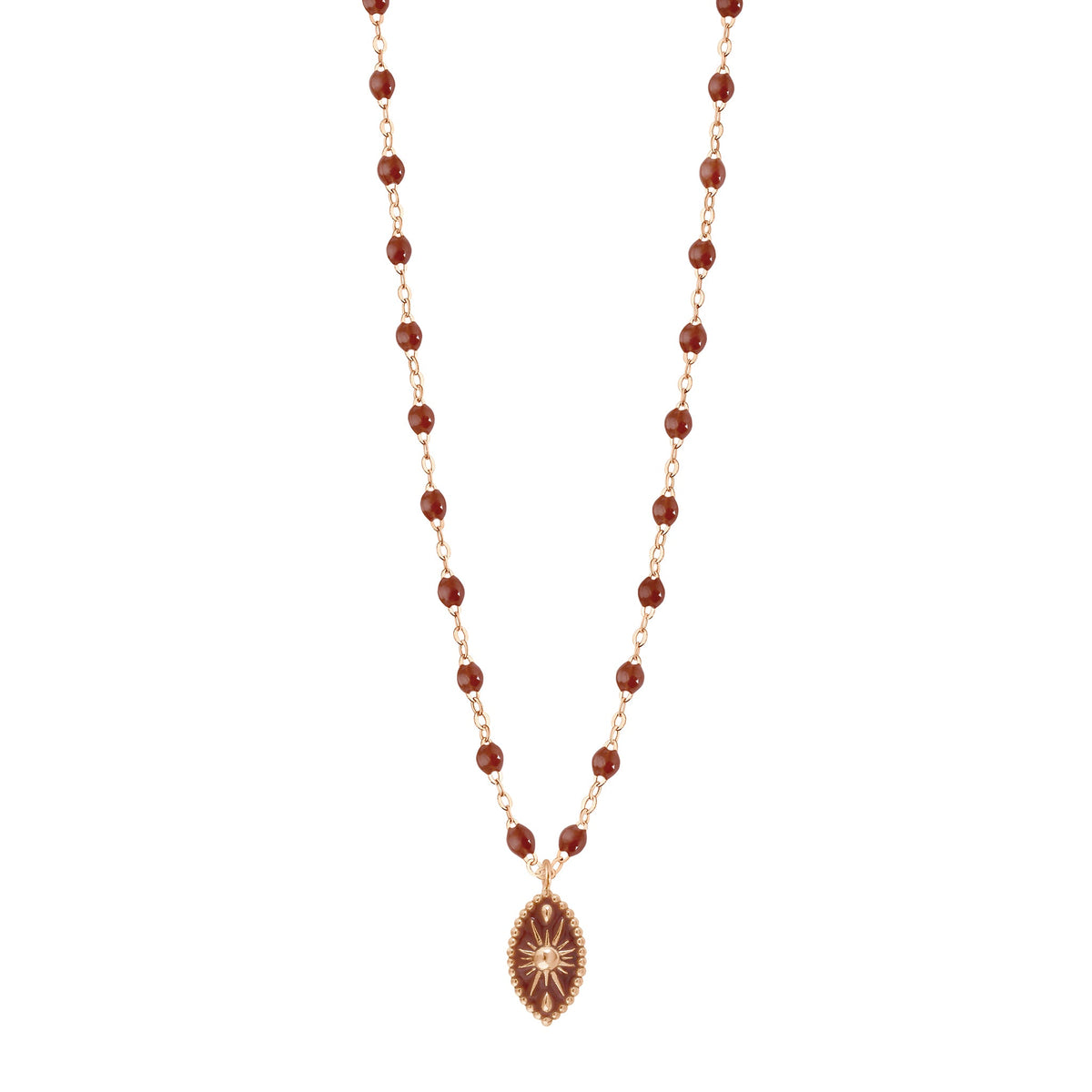 Gigi Clozeau - Collier Karma résine moka, or rose, 42 cm