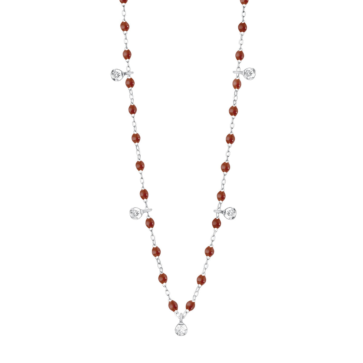 Gigi Supreme Classic 5 Diamond Necklace, Moka, White Gold, 45 cm