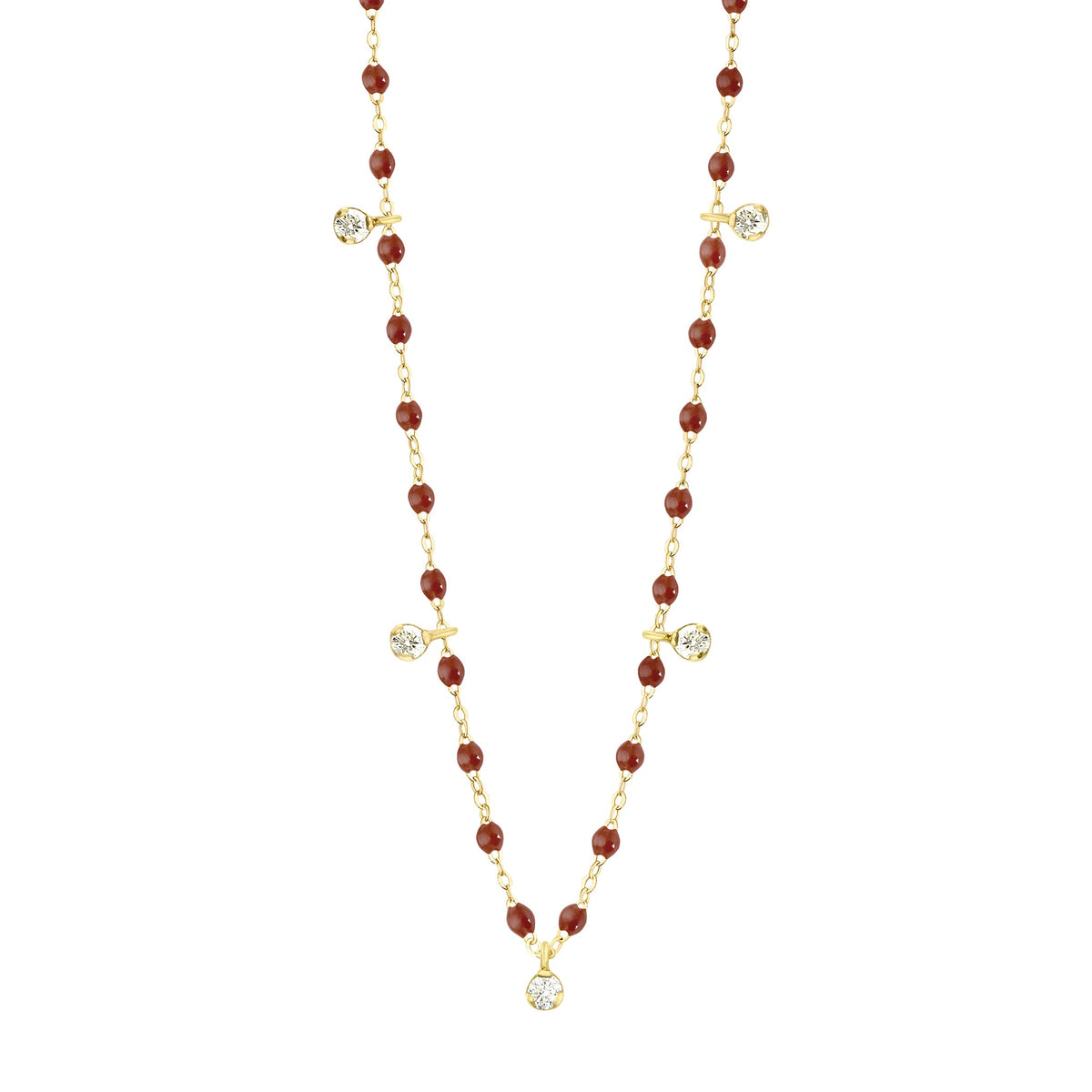 Gigi Supreme Classic 5 Diamond Necklace, Moka, Yellow Gold, 45 cm