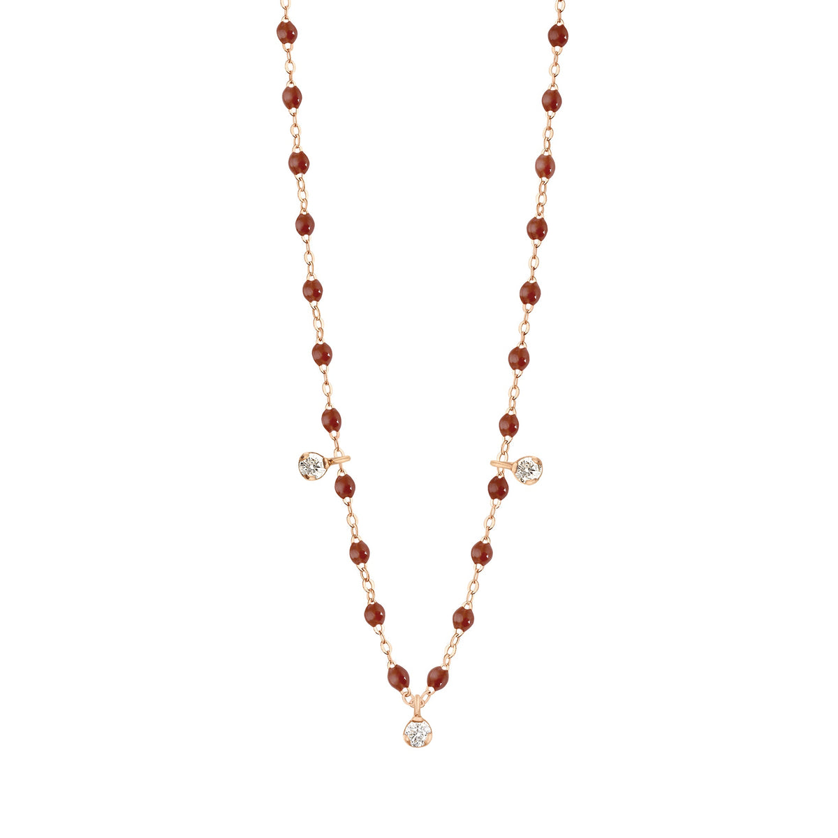 Gigi Clozeau - Collier moka Gigi Suprême, or rose, 3 diamants, 45 cm