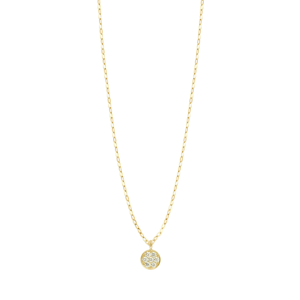 Like a cloud of stardust leaving a trail of joy and sparkle where it passes, the Pure Gigi Puce necklace on a classic gigi chain is a subtle good luck charm. Pure Gigi Puce necklace with a sparkling, discreet, 18 carat yellow gold chain, highlighted by 7 pavé diamonds.